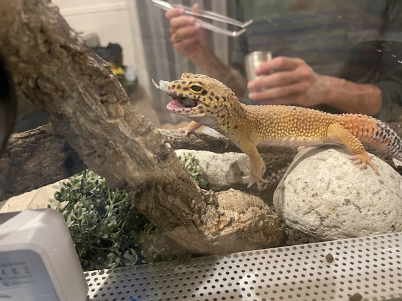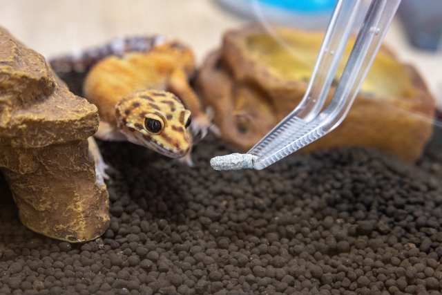 食べが悪いときは、ピンセットでつまんだ餌をレオパの目の前で動かすなどして興味を引いてみてください。また、最初は活餌で初めて少しずつ冷凍餌や人工餌に切り替えていくのも良い方法です。