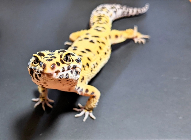 レオパには黄色、オレンジ、黒、白など多彩なモルフがあり、それぞれに違った魅力があります。多様な種類からお気に入りの一匹を見つけるのも楽しいです。