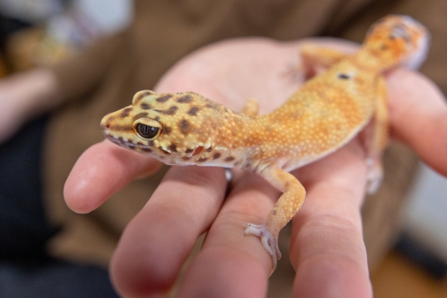 無理やり持ち上げたり、長時間ハンドリングし続けたりすることは、レオパにとって強いストレスになります。紹介したように、過度なハンドリングは「ギャッ」「ピィー」といった鳴き声や、威嚇・自切につながることがあるため、注意してください。
