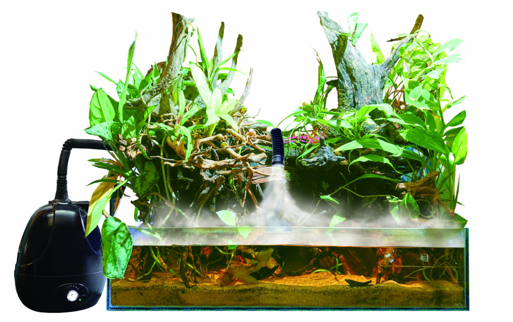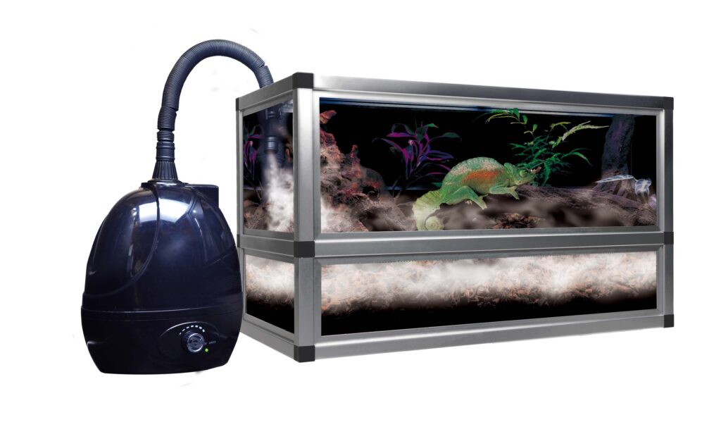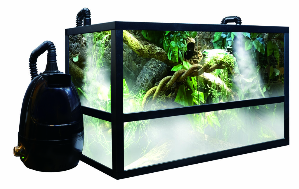 Fogは爬虫類ケージやテラリウムの真横に並べて設置できる加湿器で、